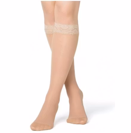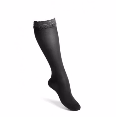 Kompressionsstrumpa, 15-20mmHg, med spets i nylon är graderade kompressionsstrumpor med fin lyster och som avslutas med en exklusiv spetskant.
